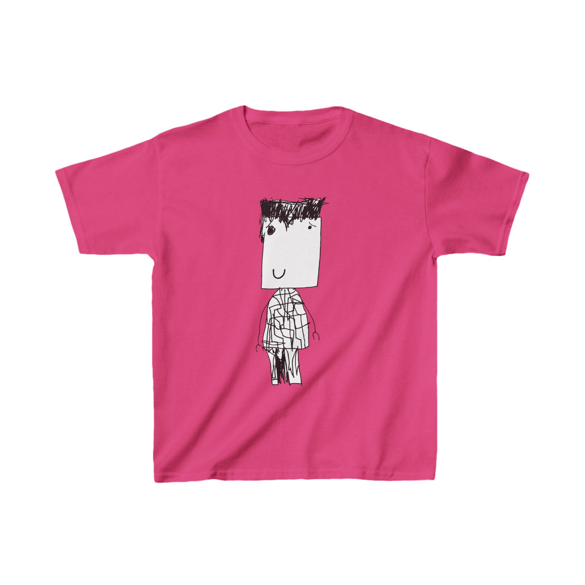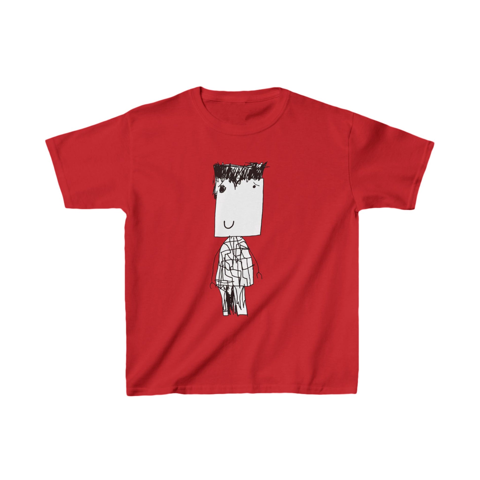 The kids heavy cotton tee is perfect for everyday use. The fabric is 100% cotton for solid colors. Polyester is included for heather-color variants. These fabrics are prime materials for printing. The shoulders have twill tape for improved durability. The collar is curl resistant due to ribbed knitting. There are no seams along the sides.